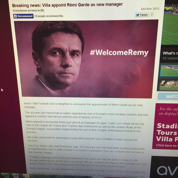 – Rémi tuli ja hänellä oli mukanaan ideat, rehellisyys, huumori ja tunne siitä, mitä se vaatii että Aston Villa saadaan halutunlaiseksi: rajusti töitä tekeväksi, väsymättömäksi, luovaksi ja sellaiseksi joka ei suostu päästämään maaleja, Aston Villan puheenjohtaja Randy Lerner sanoi seuran tiedotteessa.