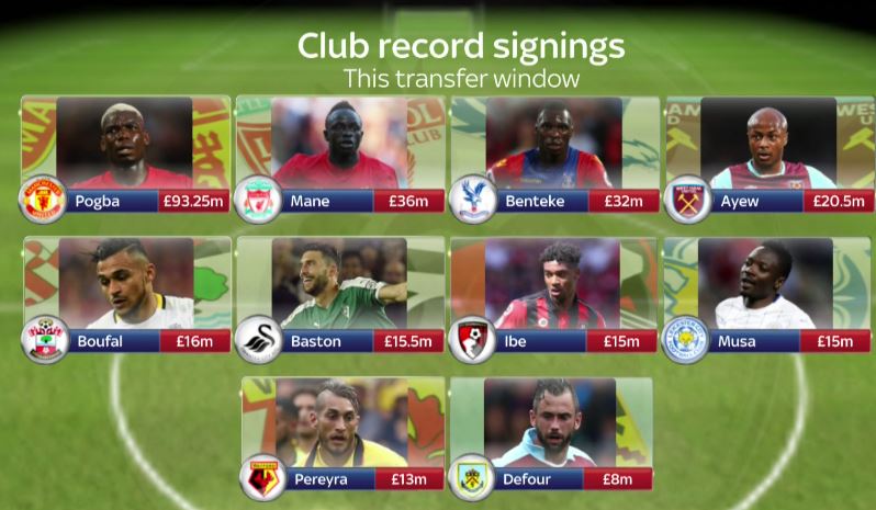 Peräti 10 joukkuetta on tämän kesän aikana rikkonut oman siirtoennätyksensä. Myös pienemmät seurat ovat laittaneet seteleitä tiskiin huolella. Kovimmasta paukusta on vastannut Manchester United, joka rikkoi maailmanennätyksen maksamalla Paul Pogbasta Juventukselle noin 110 miljoonaa euroa.