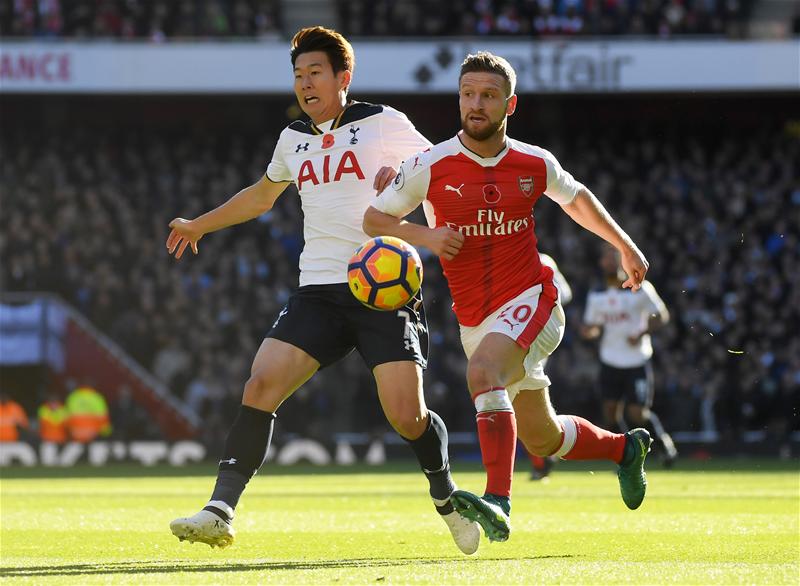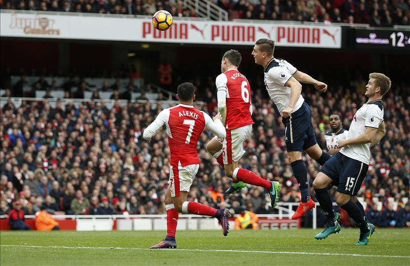 Arsenal rynnisti alkuminuutit kovaa naapurinsa kimppuun, mutta viiden pelatun kohdalla myös Spurs pääsi oman pelinsä rakentelusta kiinni. Kevin Wimmer ajoi rumasti myöhästyen 6. minuutilla Francis Coquelinin päälle, selviten keltaisella kortilla. Pallon pelaamisen sijaan vierasjoukkue keskittyikin ensimmäisen kympin sisään rikkomaan vastustajan pelaajia.