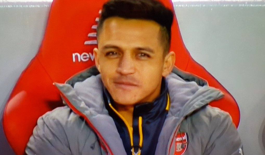 First smile from @Alexis_Sanchez in 6 months... and it's from the bench when we go a goal down at Anfield #LFCvAFC #Arsenal