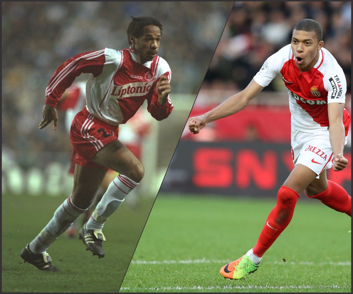 Sekä Mbappé että Henry ovat perimältään siirtolaistaustaisia pelaajia. Henryn vanhemmat ovat kotoisin Karibialta, kun Mbappén juuret puolestaan ovat Afrikassa. Nuorukaisen isä on kotoisin Kamerunista ja käsipalloa pelannut äiti Algeriasta. Sekä Henry että Mbappé kuitenkin syntyivät ja varttuivat Ranskassa, kumpainenkin vieläpä Pariisin esikaupunkialueella. Pariisin liepeiltä Henry ja Mbappé osuivat AS Monacon tutkaan, ja molemmat siirtyivät Etelä-Ranskan jättiläiseen 14 vuoden iässä. Tätä ennen kumpaakin kärkimiestä oli jalostettu maineikkaassa ranskalaisessa jalkapallon eliittiakatemiassa Clairefontainessa. Zinedine Zidane yritti vokotella Mbappén vuonna 2013 Real Madridin akatemiaan, mutta pelaaja ei halunnut lähteä Ranskasta vielä niin nuorena. Kuriositeettina mainittakoon, että Henryn hankki Monacoon seuran edustusjoukkuetta silloin valmentanut Arsène Wenger. Viisi vuotta myöhemmin vuonna 1999 Wenger toi Henryn perässään Arsenaliin, ja yhteistyön hedelmälliset tulokset ovatkin kaikkien tiedossa.Debyyttipeli ja avausmaali Henryä nuorempana