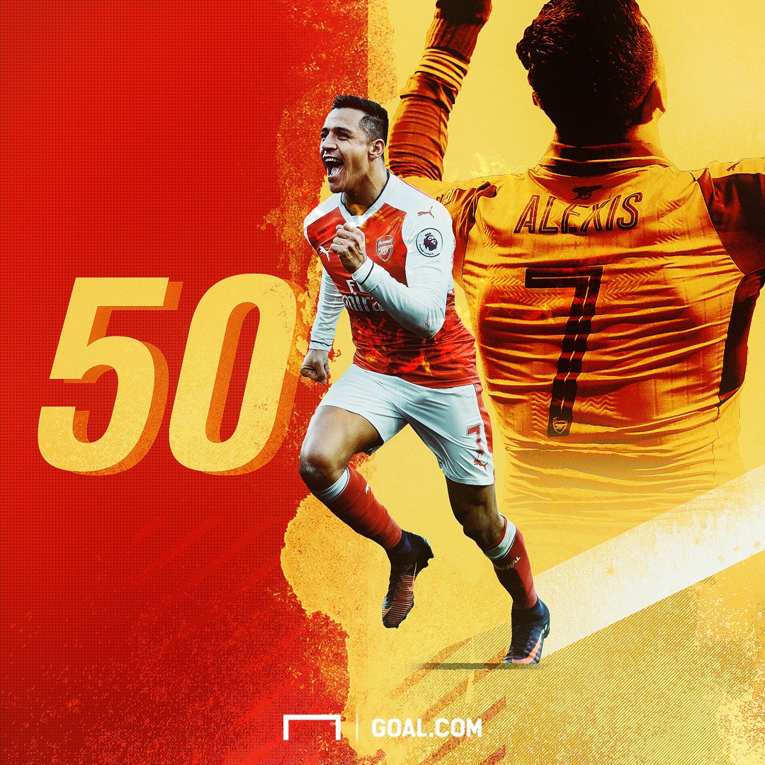 Alexis Sanchez scores his 50th Premier League goal in their imminent win over Stoke! An Arsenal hero.