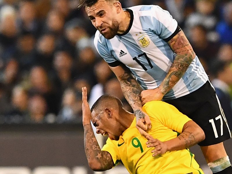 Ikävä tilanne tapahtui Argentiinan ja Brasilian välisen ystävyysottelun loppuhetkillä. Kaksikon taistellessa pallosta Otamendi näytti osuvan Jesusia kyynärpäällä kasvoihin, ja tämä jouduttiin kantamaan paareilla pois kentältä.