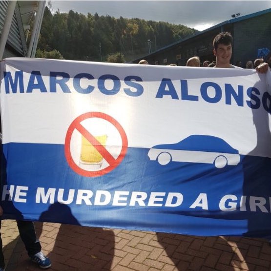 Sosiaalisessa mediassa levisi kuva lakanasta, jonka viesti kuului: ”Marcos Alonso, hän murhasi tytön.” Lakanassa on kuvattuna auto ja alkoholin kieltomerkki. Lakana nosti kritiikkivyöryn etenkin Chelsea-yhteisön taholta.