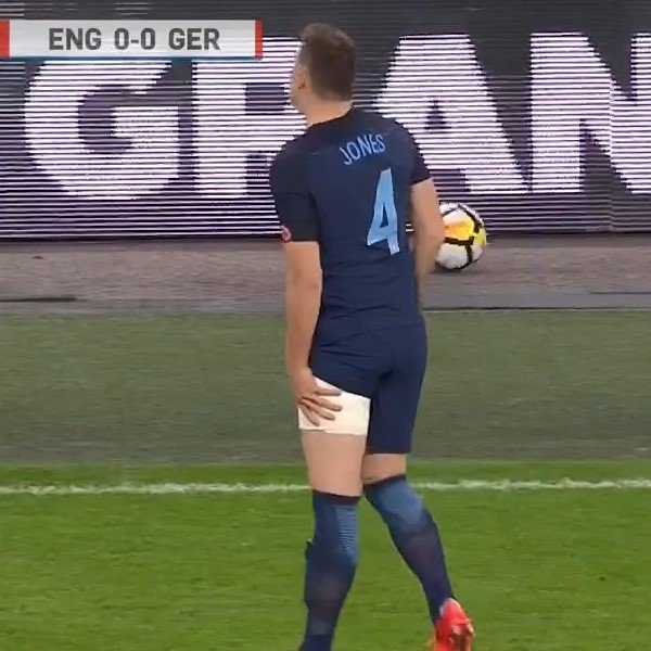 Jones oli avauskokoonpanossa Englannin puolustuslinjassa harjoitusottelussa Saksaa vastaan, mutta joutui tulemaan vaihtoon jo 25. peliminuutilla. United-toppari loukkasi ilmeisesti nivustaan Englannin maalia varjellessaan. Jonesin korvasi kentällä Liverpoolin Joe Gomez.