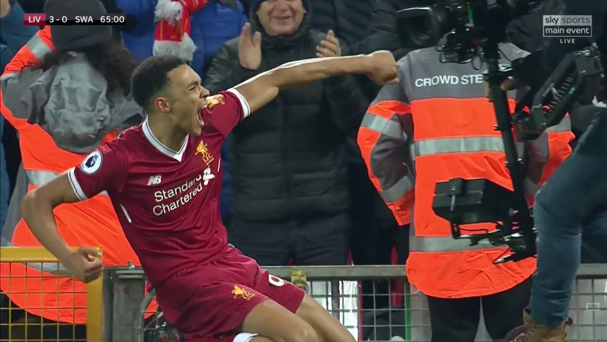 Trent Alexander-Arnold is the first teenager to score in PL for Liverpool since Raheem Sterling in Sept 2014