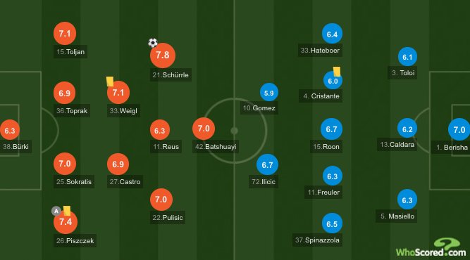 Borussia Dortmund 1-0 Atalanta HT: André Schürrle has scored or assisted in Dortmund's last three matches whoscored.com/Matches/125082… #UEL
