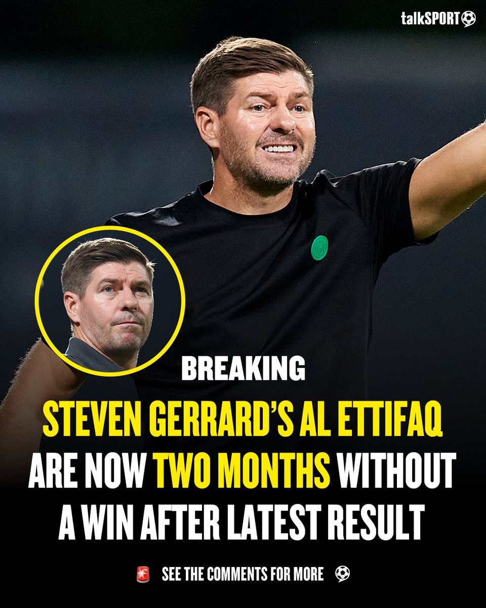 Gerrardin, 43, luotsaama Al-Ettifaq on pelannut jo yli kaksi kuukautta ilman voittoa, ja se on lipsunut sarjataulukossa keskikastiin.