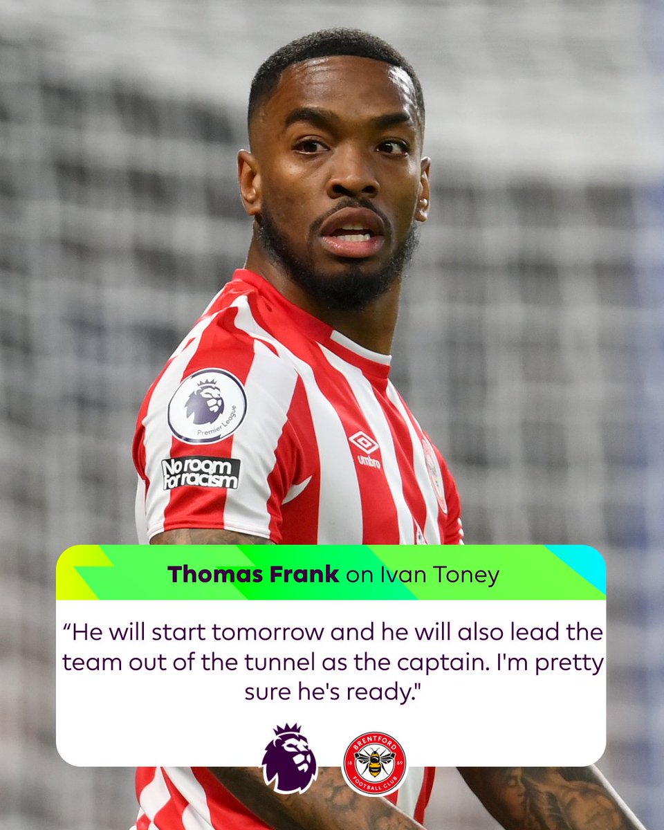 Brentfordin päävalmentaja Thomas Frank on vahvistanut, että pannansa kärsinyt tähtihyökkääjä Ivan Toney palaa suoraan joukkueen avaukseen.
