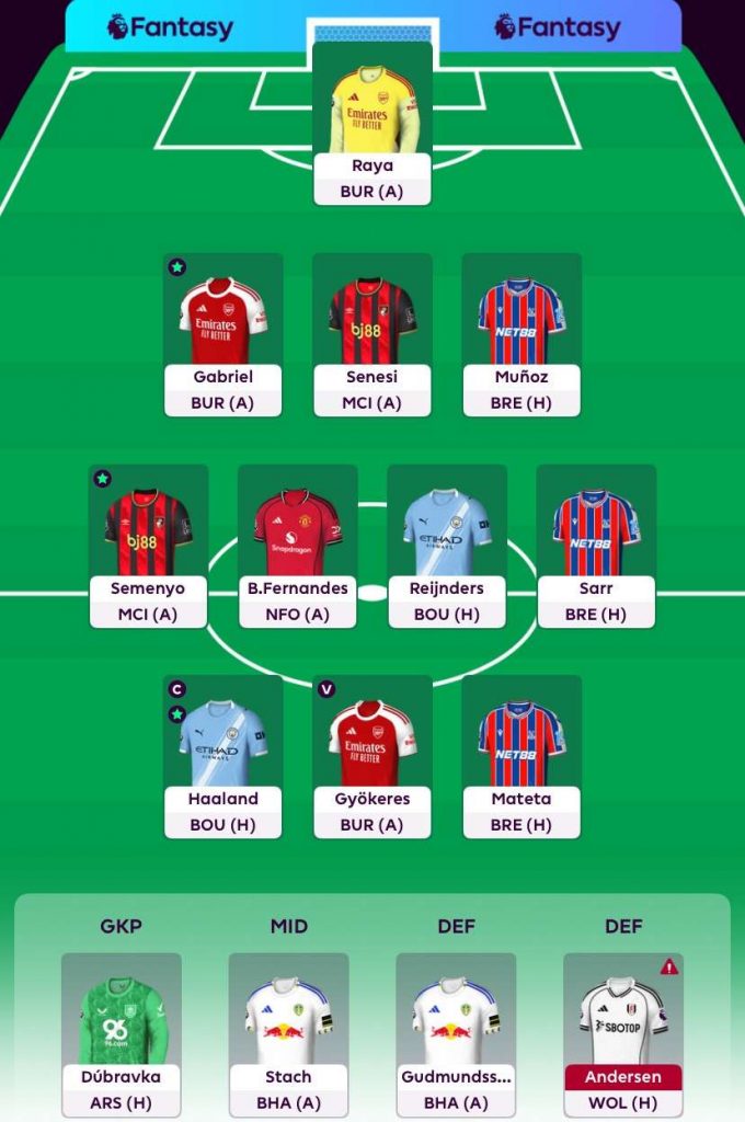 Toimituksen joukkue ryhmittyy peliviikolle 10 yllä olevalla kokoonpanolla. Kapteeninnauhan saa käteensä Erling Haaland.