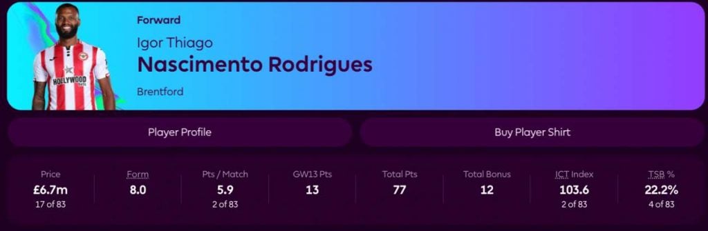 Brentford pelaa seuraavassa kahdessa ottelussaan Arsenalia ja Tottenhamia vastaan, joten jos hyökkääjää ei vielä omista, hankkimista kannattaa mahdollisesti odottaa vielä muutama peliviikko. Tämän jälkeen Thiago ja Brentford kohtaavat Leedsin, Wolvesin ja Bournemouthin.