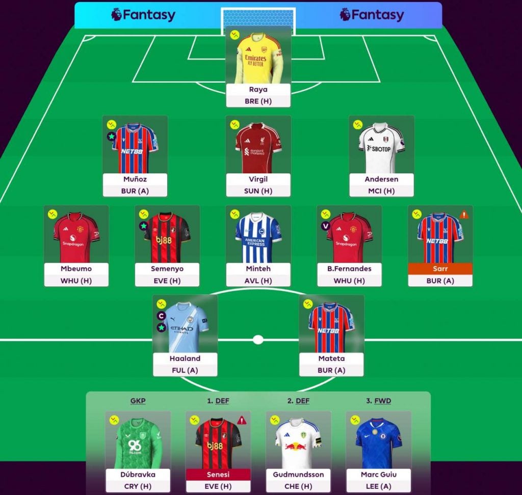 Toimituksen joukkue ryhmittyy peliviikolle 14 yllä olevalla kokoonpanolla. Kapteeninnauhan saa käteensä Erling Haaland.