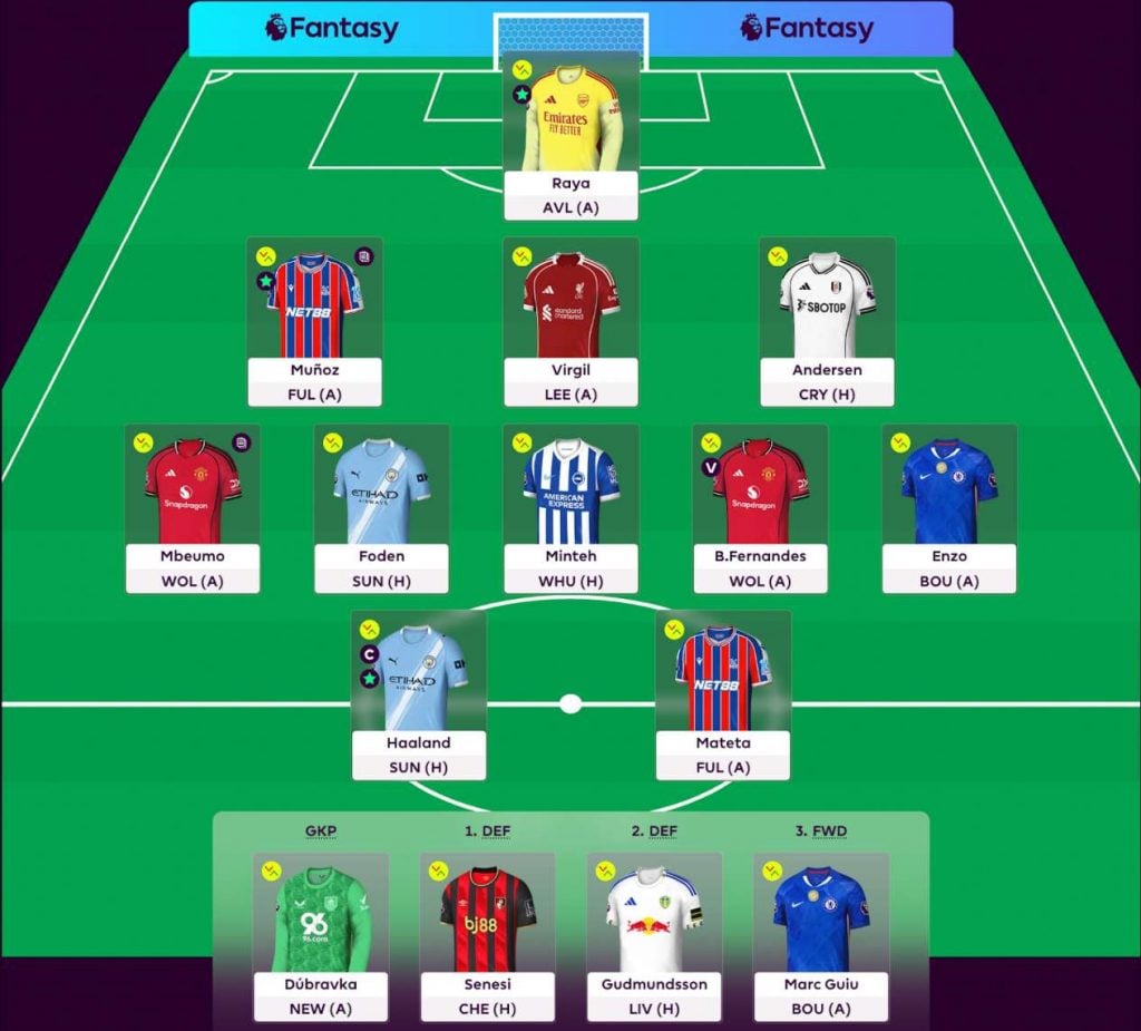 Toimituksen joukkue ryhmittyy peliviikolle 15 yllä olevalla kokoonpanolla. Kapteeninnauhan saa käteensä Erling Haaland.