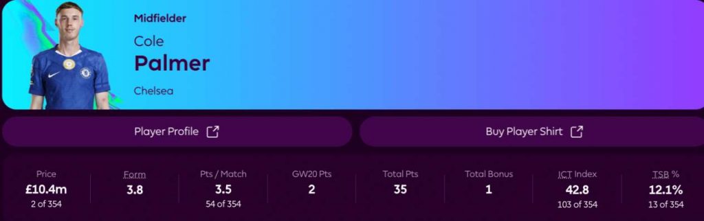 Vaikka Palmer ei ole esiintynyt viime kausien tasolla, englantilainen omaa silti potentiaalin kerätä runsaasti pisteitä omistajille.