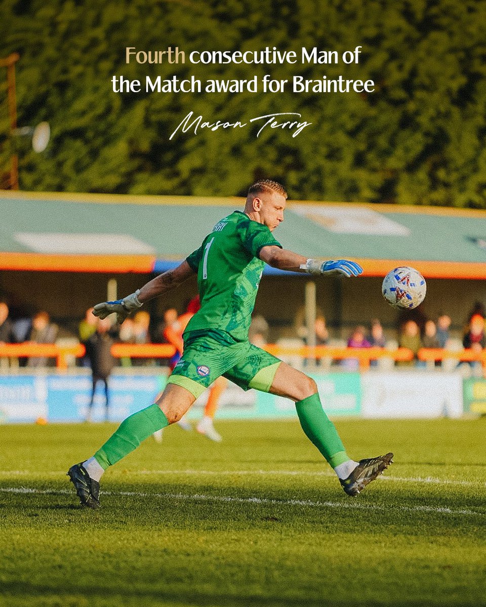 Tällä kaudella Terry on tahkonnut 29 peliä Braintreen paidassa. Otteluihin mahtuu maalikin National League Cupin puolivälierissä Truro Cityä vastaan (video Facebookissa).