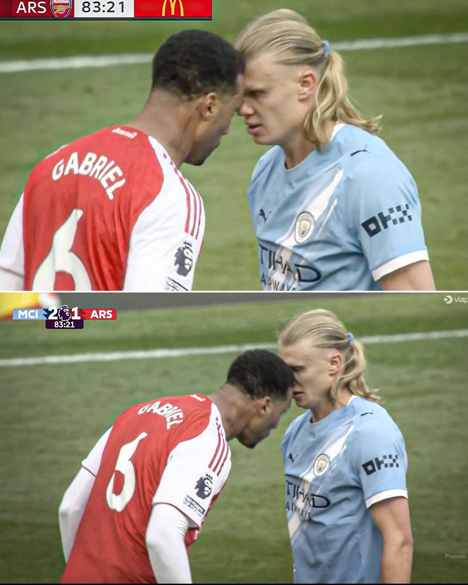 Myöhemmin kaksikko otti jälleen yhteen, kun Haaland tönäisi kaksinkamppailutilanteen jälkeen Gabrielia, joka vastasi puskemalla hänen päätään vasten. Kummallekin näytettiin tilanteesta varoitusta.